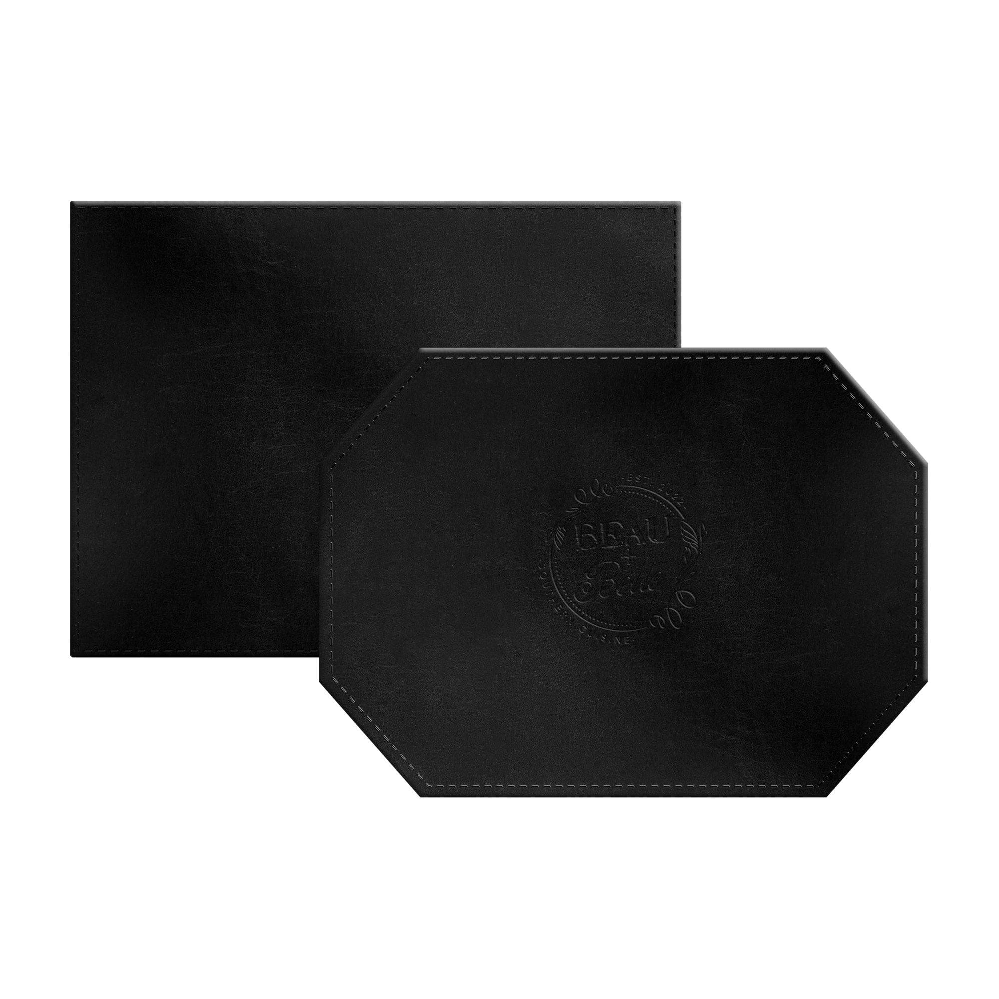 Premium Sewn PlacematsFlexible, case-bound placemats designed for everyday use in dining rooms, boardrooms, and hospitality settings. Features stitched edges and a black non-skid backing for stability during dining service. Available in both rectangular and octagonal shapes.