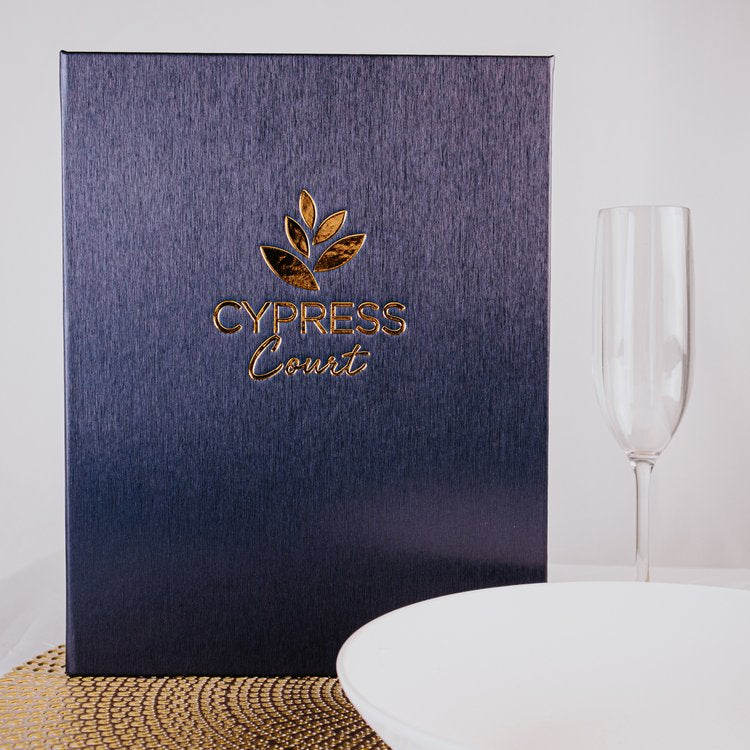 Sterling is a smooth, shimmering cover material that brings modern elegance and standout sophistication to any hospitality setting. Its subtle gem-like tones and silky sheen reflect light beautifully, making it a striking choice for restaurants, hotels, country clubs, and upscale lounges that want to elevate their presentation. More than just menu covers, Sterling can also be crafted into coordinating products such as check presenters, binders, and table tents - allowing you to create a cohesive, polished tabletop experience. Every Sterling product is handcrafted in the USA and fully customizable with your logo, size, and interior configuration.