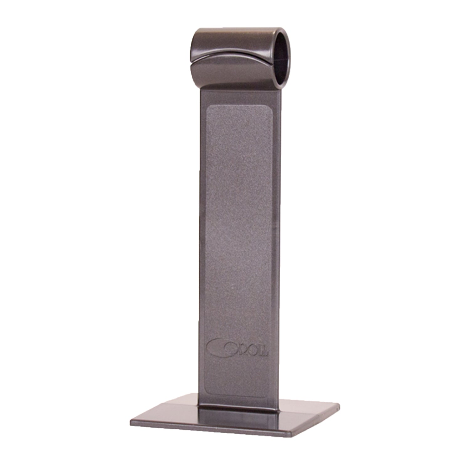 This 9" graphite acrylic stand features a 2 1/8" × 1/4" slot and weighted base for added stability. Designed to hold up to 12 clear vinyl roll pockets (sold separately), each displaying 4 1/4" × 6 1/4" printed inserts. A versatile solution for organized tabletop displays that’s easy to update and even easier to clean.