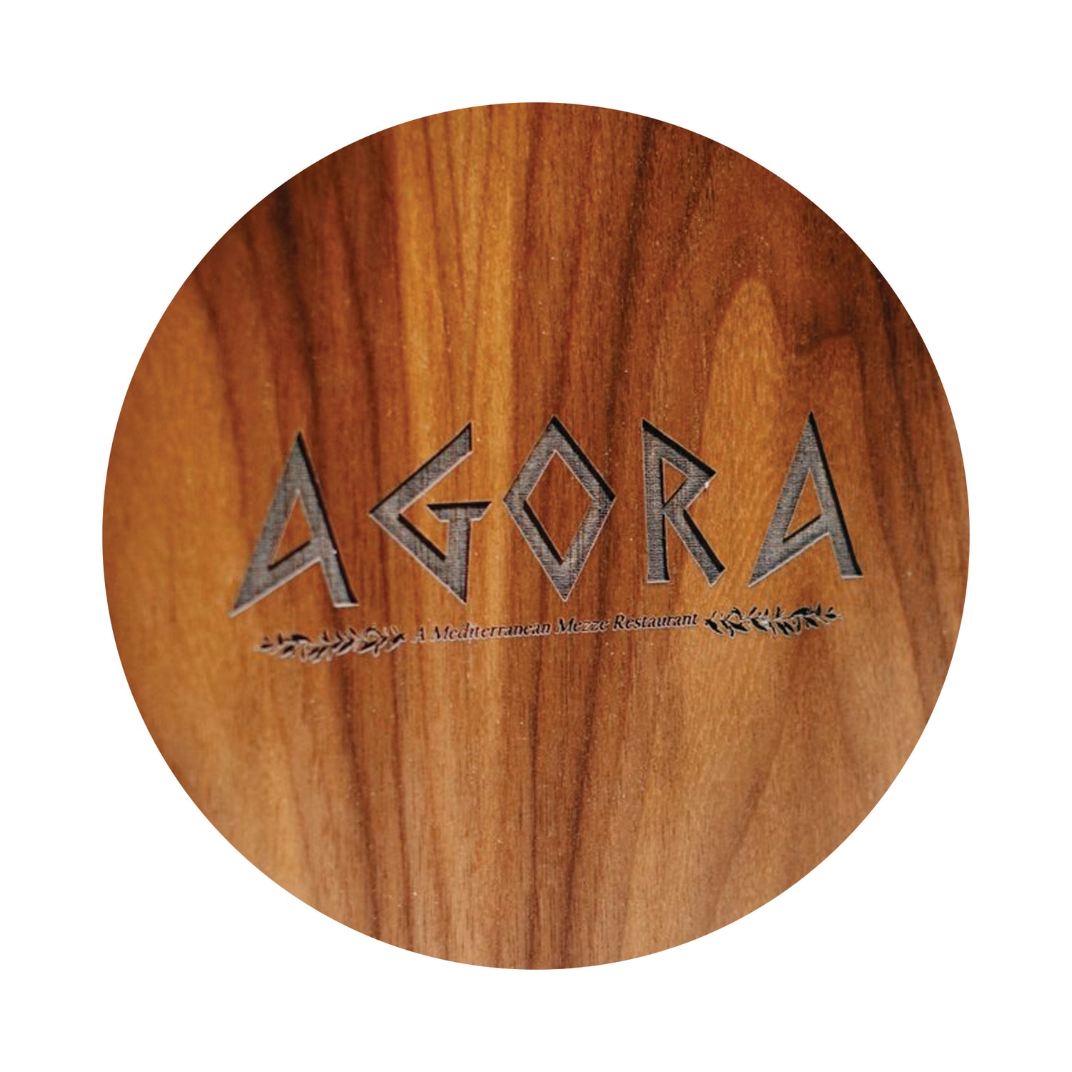 Precision logo etching on authentic wood.
