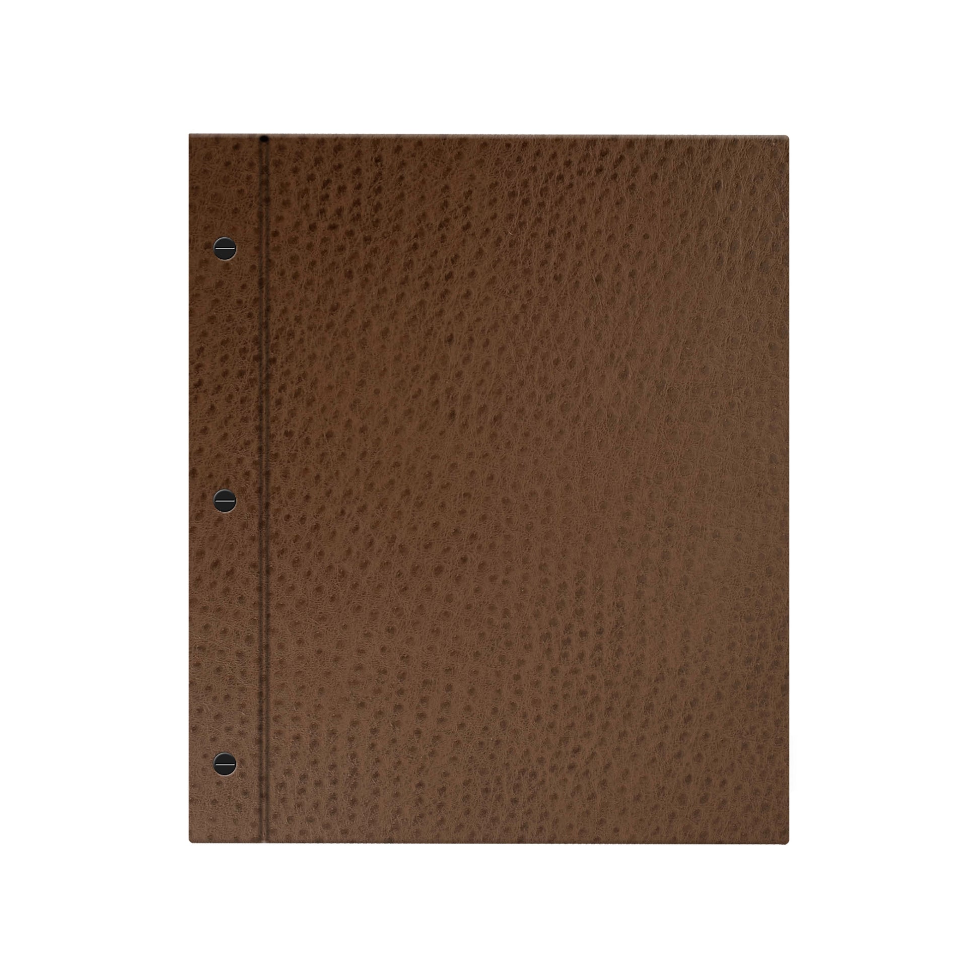 The Chicago Menu Board is a hardback cover with an exposed spine that uses three black durable screw posts to securely bind your menu inserts. This configuration can hold up to twelve pages, making it ideal for larger menus or beverage programs that still want a sleek, minimalist look. Pages are easy to add, remove, or rearrange, offering flexiblity and longevity in a polished format.