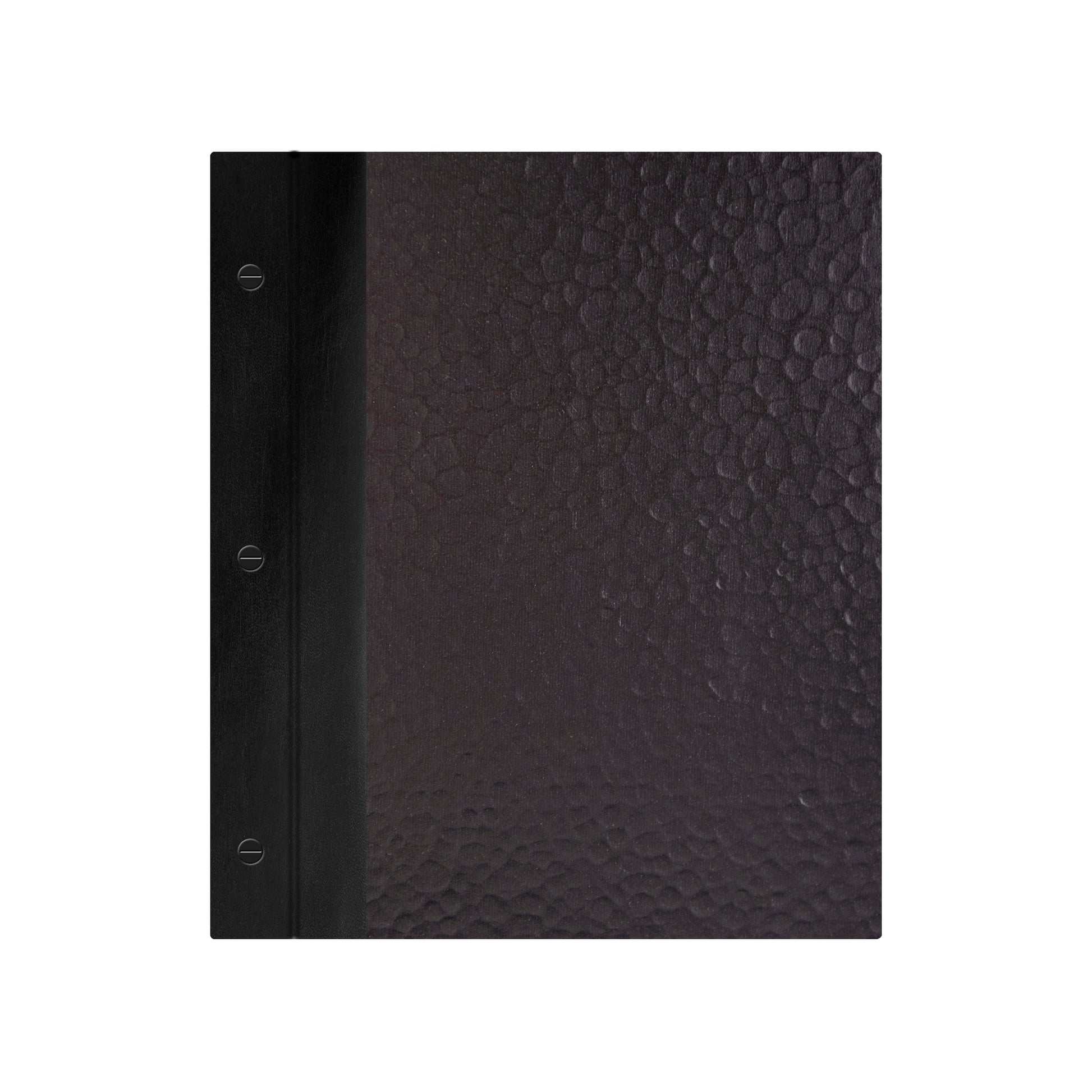 The Chicago Menu Board is a hardback cover with an exposed spine that uses three black durable screw posts to securely bind your menu inserts. This configuration can hold up to twelve pages, making it ideal for larger menus or beverage programs that still want a sleek, minimalist look. Pages are easy to add, remove, or rearrange, offering flexiblity and longevity in a polished format.
