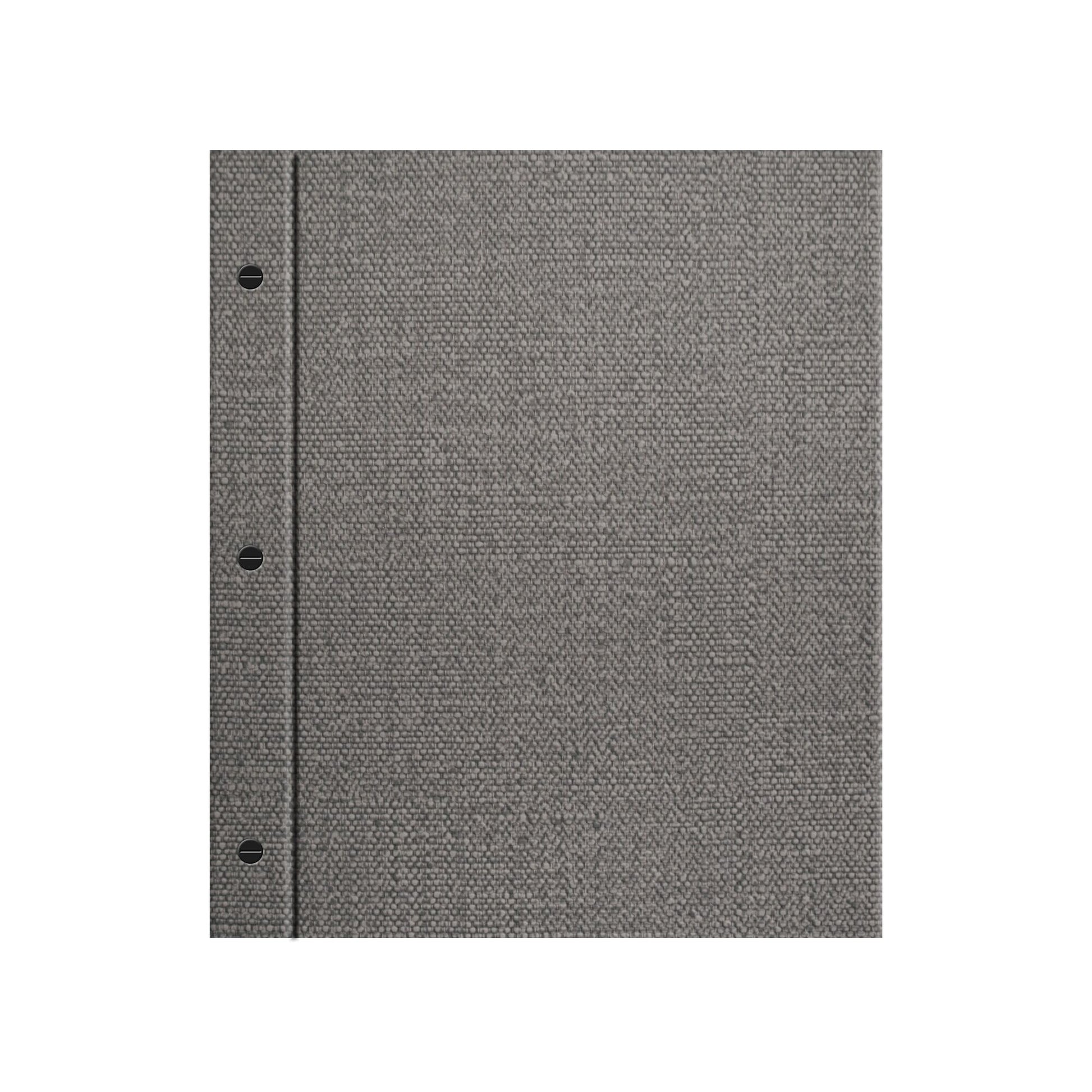 The Chicago Menu Board is a hardback cover with an exposed spine that uses three black durable screw posts to securely bind your menu inserts. This configuration can hold up to twelve pages, making it ideal for larger menus or beverage programs that still want a sleek, minimalist look. Pages are easy to add, remove, or rearrange, offering flexiblity and longevity in a polished format.