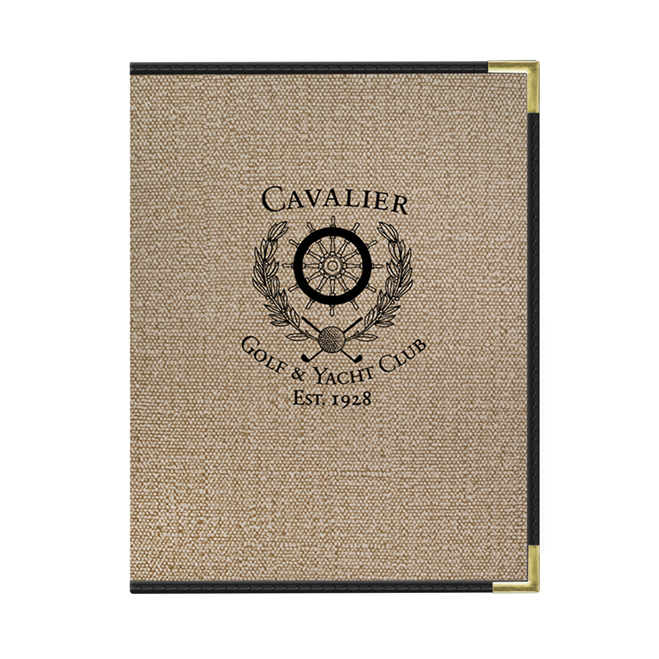 This configuration uses a Pocket Interior style with clear plastic sleeves to protect menu pages while keeping them easy to update. Available in formats from 1-view to 12-view-custom number of views available upon request.