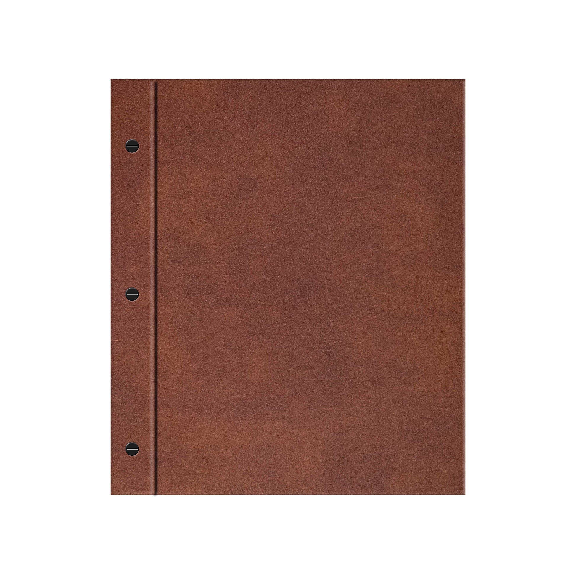 The Chicago Menu Board is a hardback cover with an exposed spine that uses three black durable screw posts to securely bind your menu inserts. This configuration can hold up to twelve pages, making it ideal for larger menus or beverage programs that still want a sleek, minimalist look. Pages are easy to add, remove, or rearrange, offering flexiblity and longevity in a polished format.